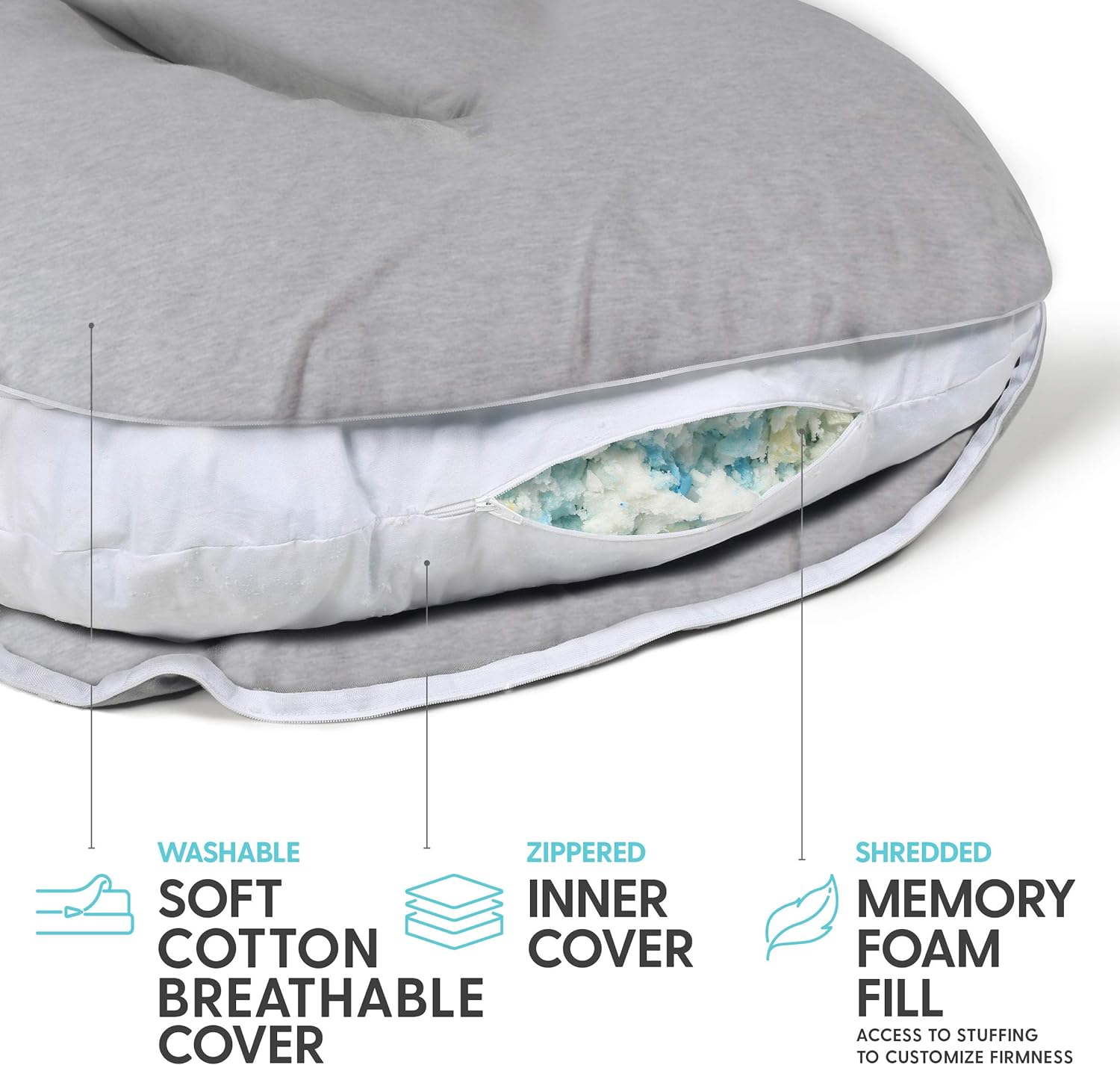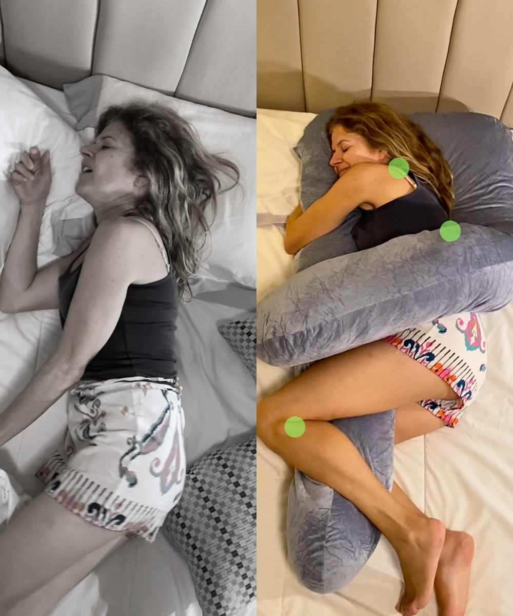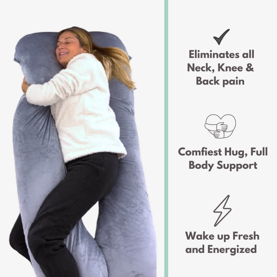 Grazie alla sua forma a U, il cuscino Cuddly supporta tutti coloro che dormono sul fiancoe il ripieno da 7 libbre fornisce il giusto equilibrio tra morbidezza / fermezza